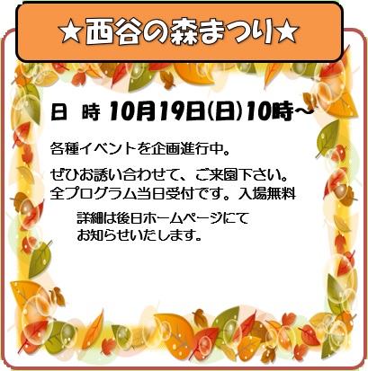 E-Mail:info@nishitaninomori.jp