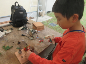 松ぼっくりや木の実を思い思いに飾りつけました。