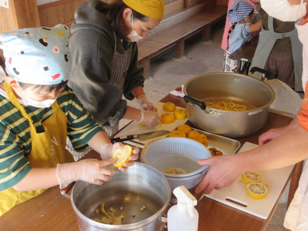 生地の発酵を待つ間、柚子のマーマレードとサツマイモ餡を作りました。