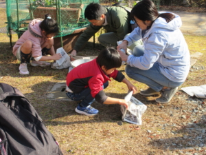 1月にしては暖かい陽気の中、去年公園の畑で収穫した