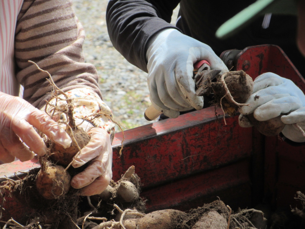 事前に掘り上げた球根を使って行いました。